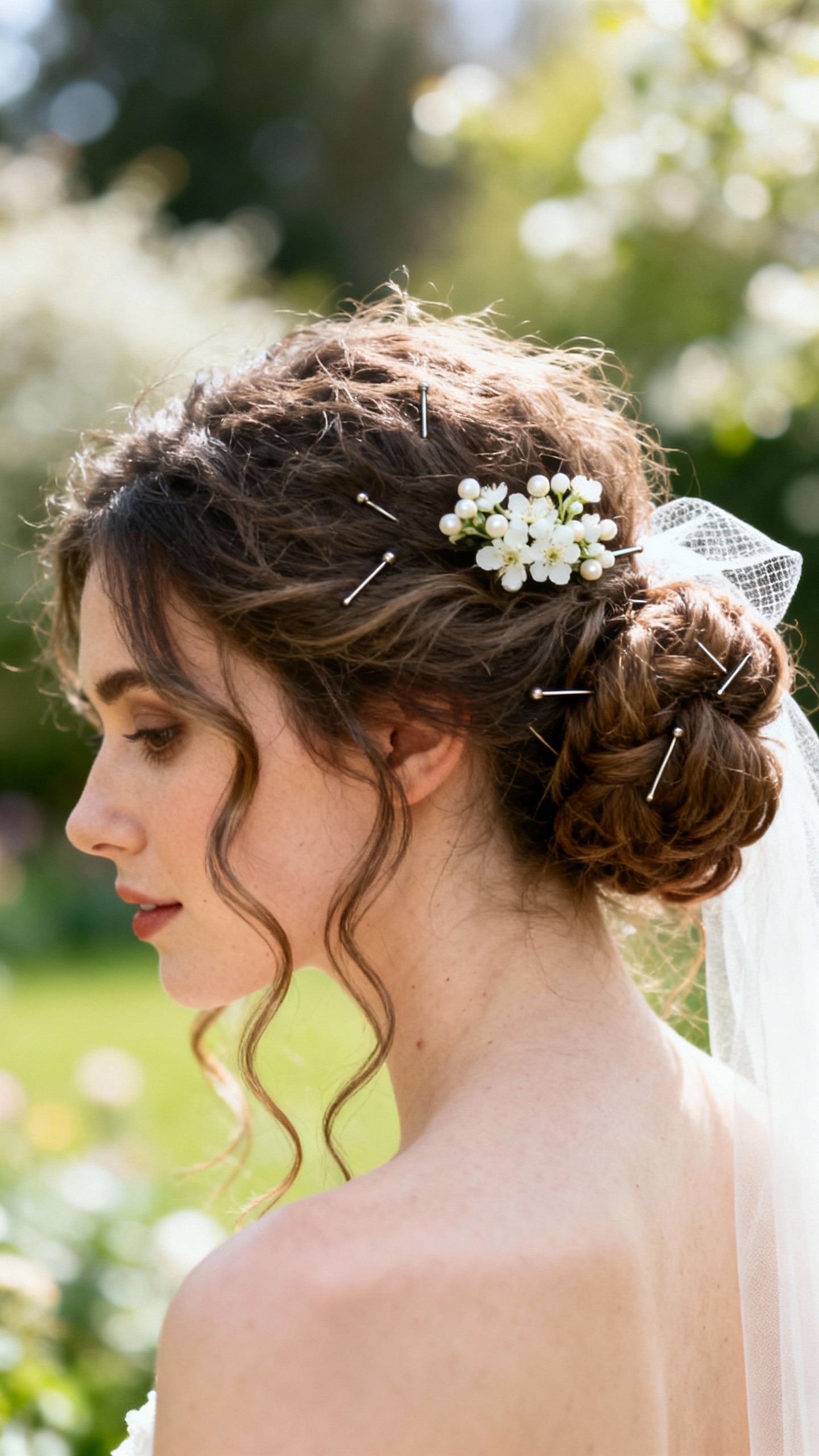 Combs, pins, and clips can all work, but they need a solid base. Ask for a small “pin cushion” foundation (a few crossed bobby pins or a tiny elastic) where the accessory will sit, especially with heavier combs or pearl clips. If you’re wearing fresh flowers, have them wired and wrapped so they don’t slip as hair softens in heat.