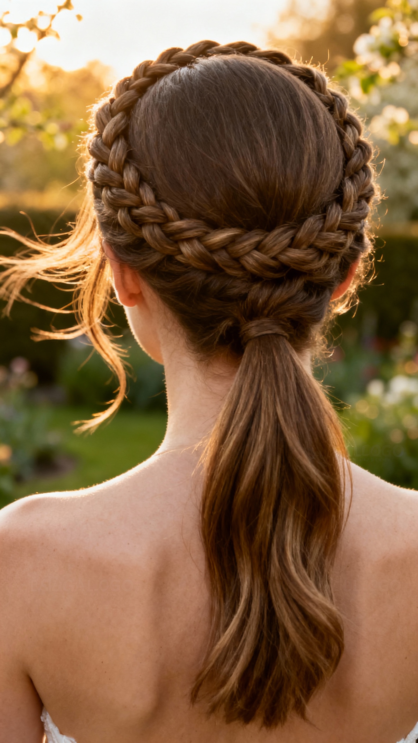 3) Braided Crown into a Low Pony (aka Wind-Proof Pretty)