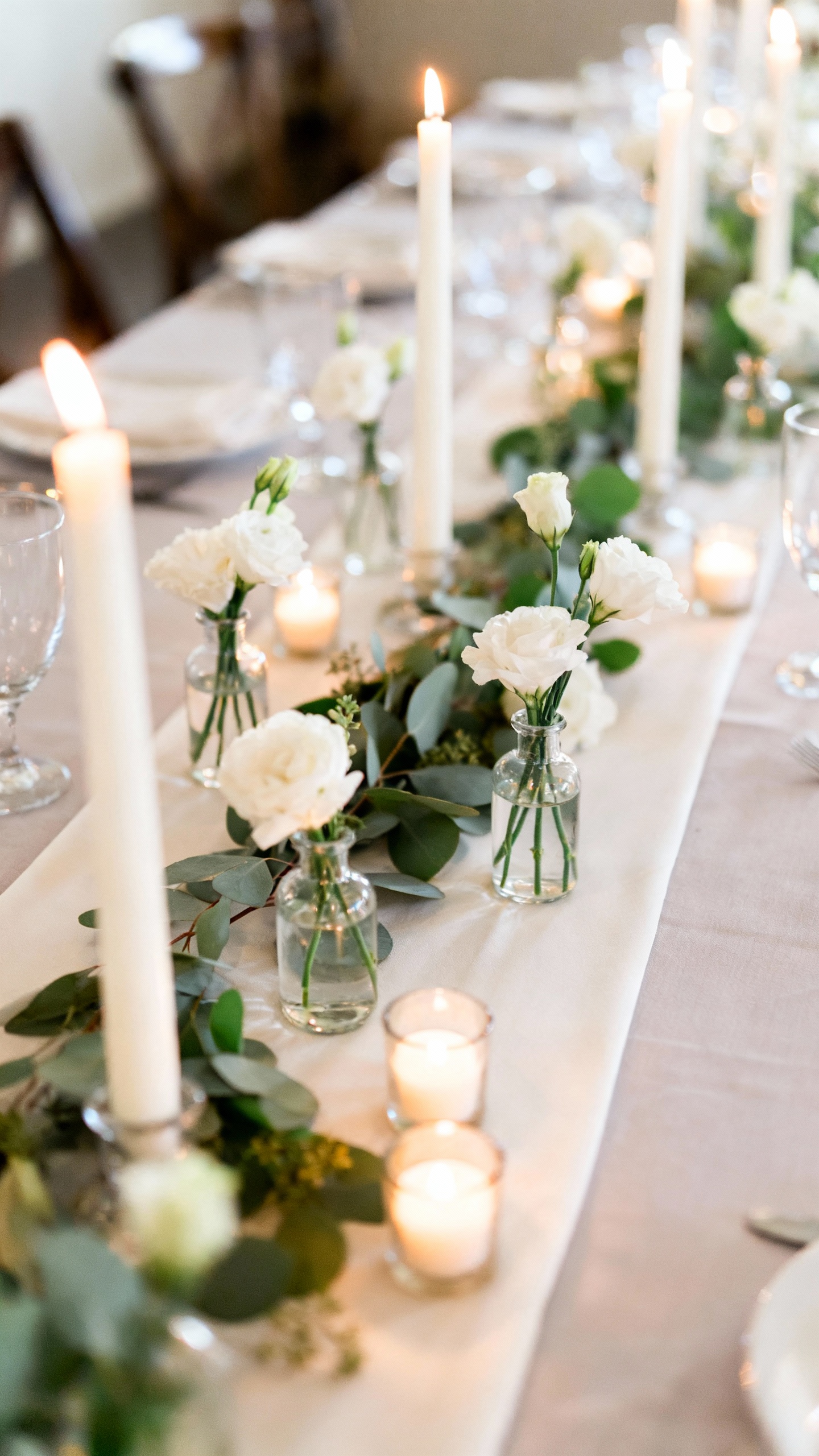 3) Bud Vases + Candles as Your Centerpiece Formula