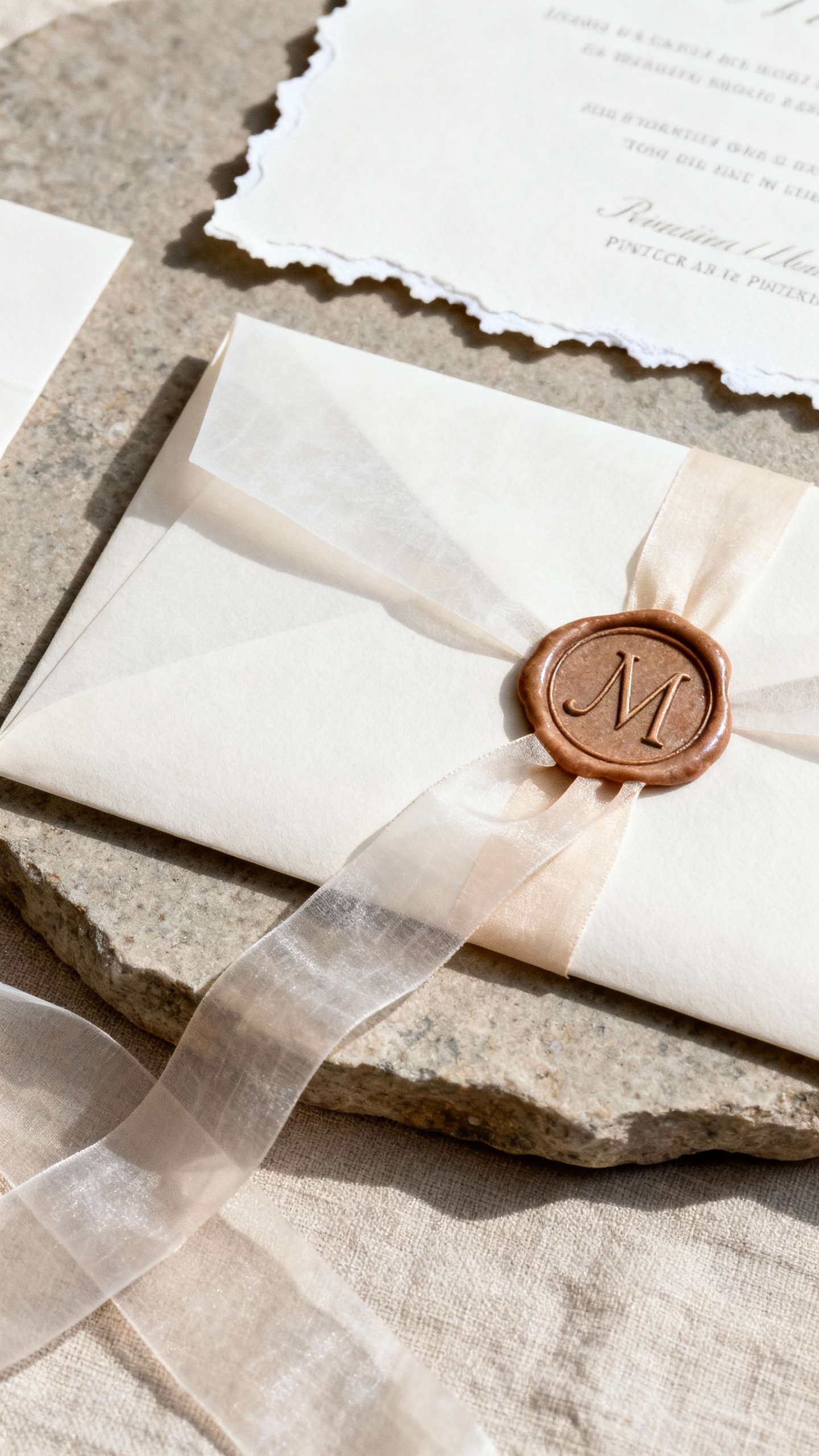 You don’t need a full custom stationery suite to get the expensive look—just one elevated element repeated consistently. Think: vellum wraps, wax seals, a minimalist monogram sticker, or a deckled-edge detail on place cards. Keep fonts simple, spacing airy, and paper colors aligned with your palette for that modern, “yes, we hired a designer” finish.