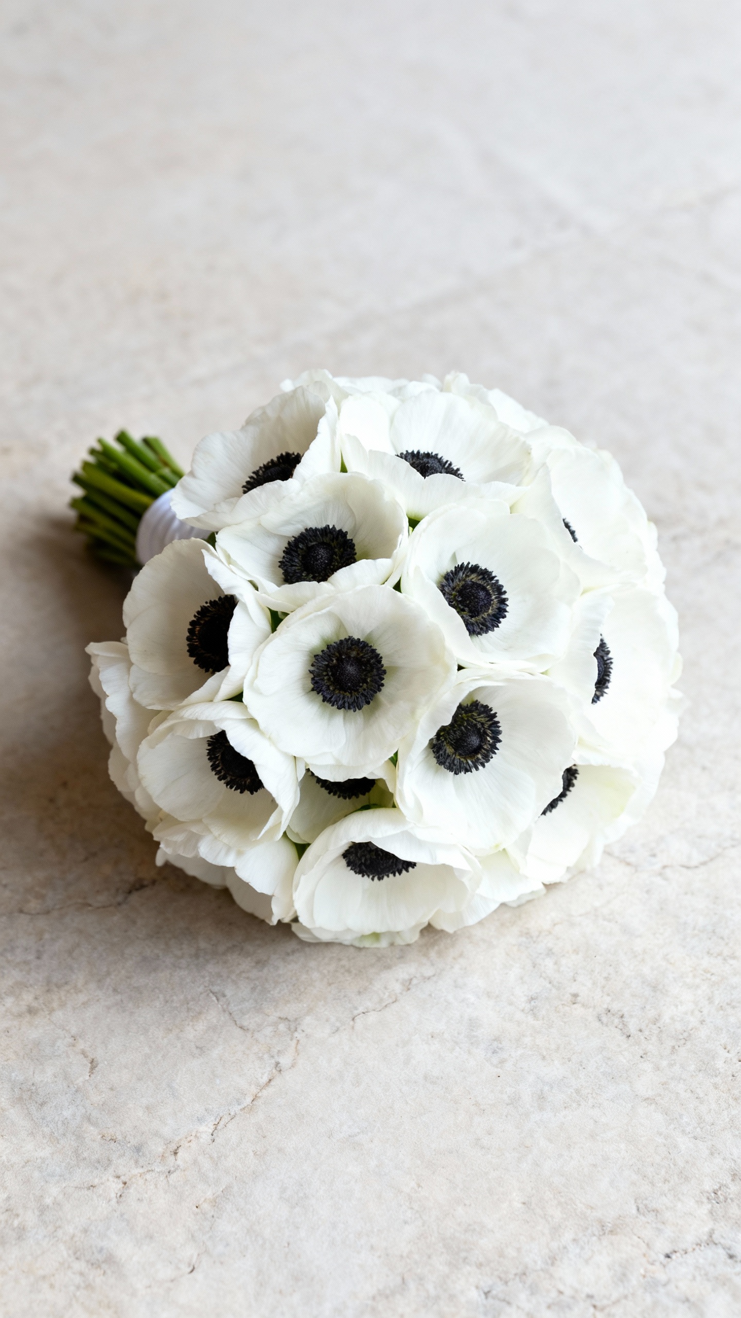 Anemones give you that high-contrast editorial look thanks to their dark centers, even when you stick to all-white petals. A tight cluster of anemones looks best in a smaller, rounded shape—perfect for city hall, modern venues, and minimalist gowns. Pro tip: anemones are a bit delicate, so build in a backup plan if your wedding is outdoors and windy.