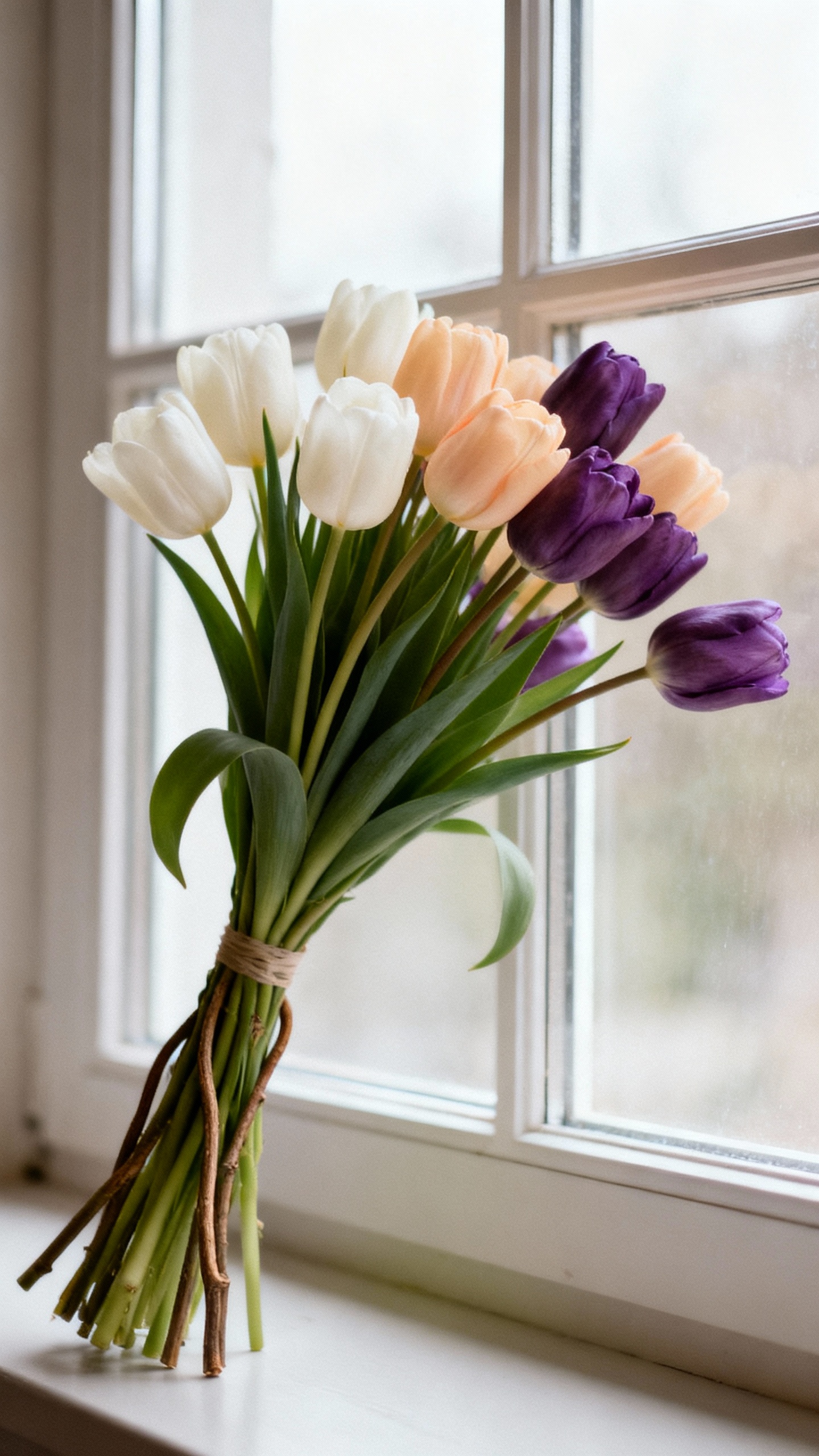 Tulips are effortless in the best way—simple, elegant, and kind of cool without trying. Choose one shade (white, creamy peach, or a moody purple) and embrace the natural bend of the stems for a relaxed editorial vibe. This looks especially stunning with a shorter ribbon tail and a slightly looser grip, like you just picked them up from a chic flower market.