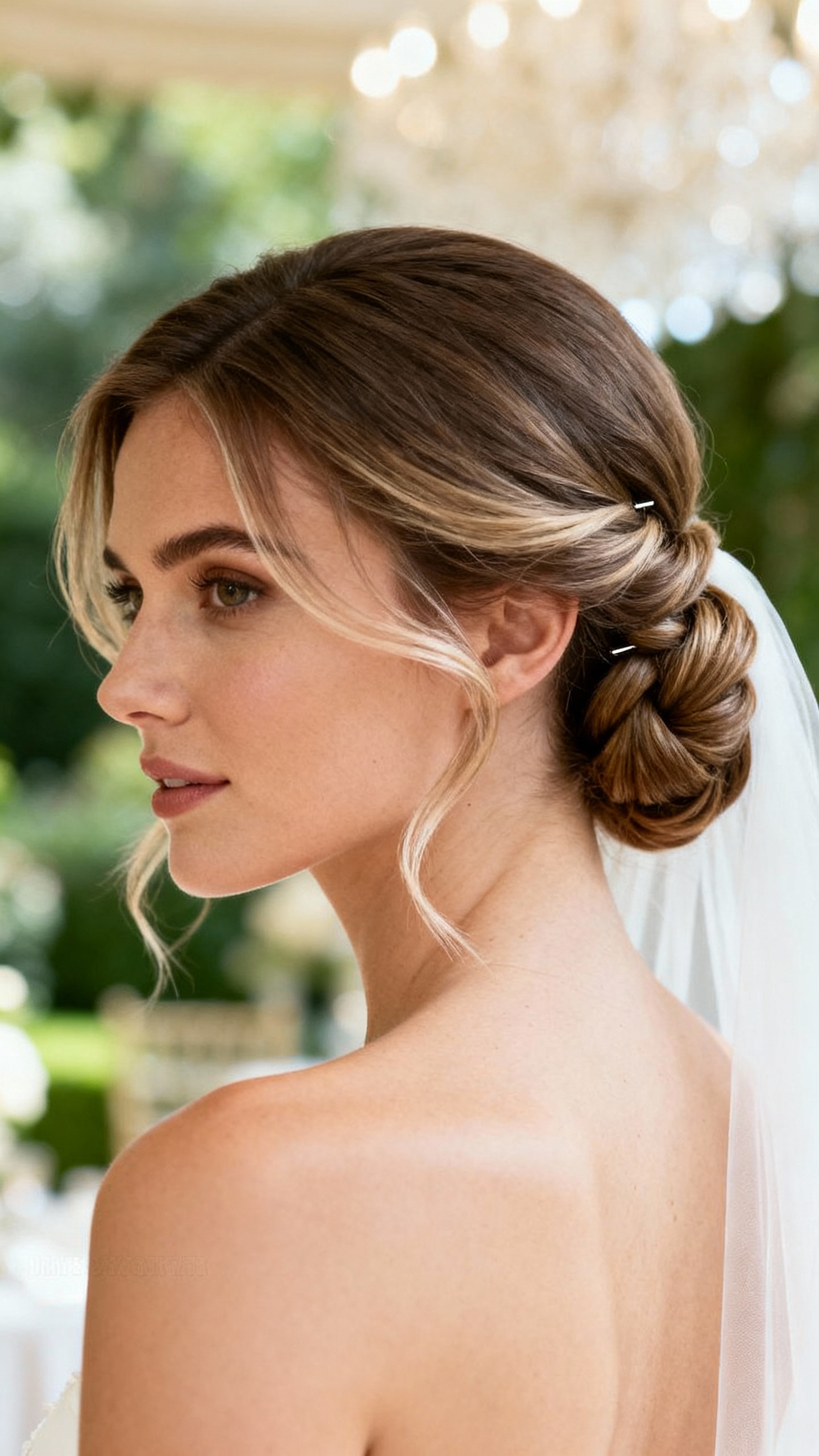 A modern French twist feels refined but not stiff—perfect for garden venues or classic ballrooms. It flatters round and square face shapes because the vertical shape elongates, while wispy face-framing pieces soften the edges. Practical tip: ask your stylist to build a slightly “padded” base (using a small hairpiece or backcombing) so pins have something to grip, especially if your hair is fine.