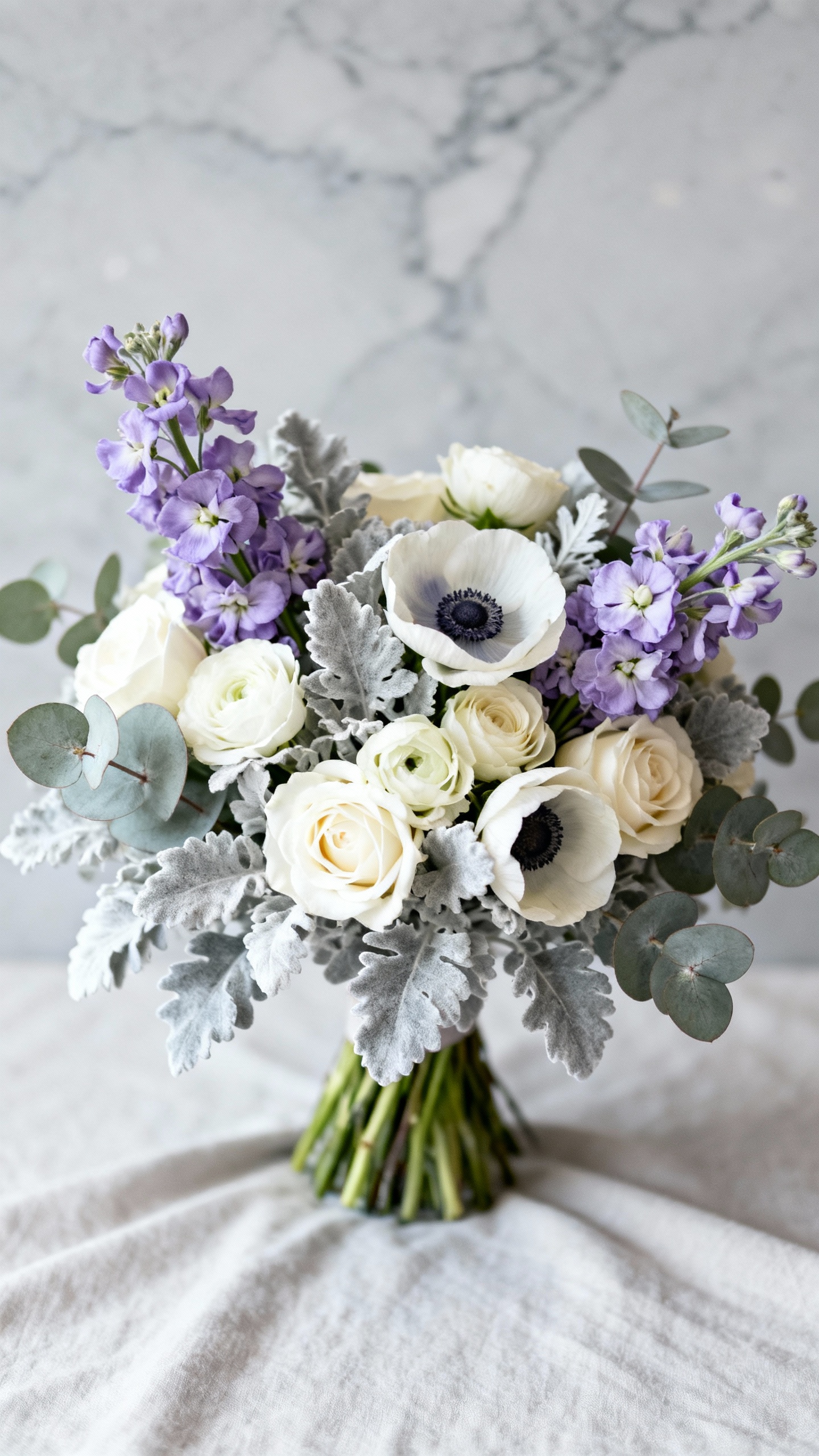 Lavender can swing childish fast—so go dusty, not candy. Pair it with creamy whites (think anemones, lisianthus, or roses) and silvery greens like dusty miller to keep it editorial. This palette photographs like a dream in soft spring light and feels extra elevated with a simple satin ribbon in ivory or taupe.