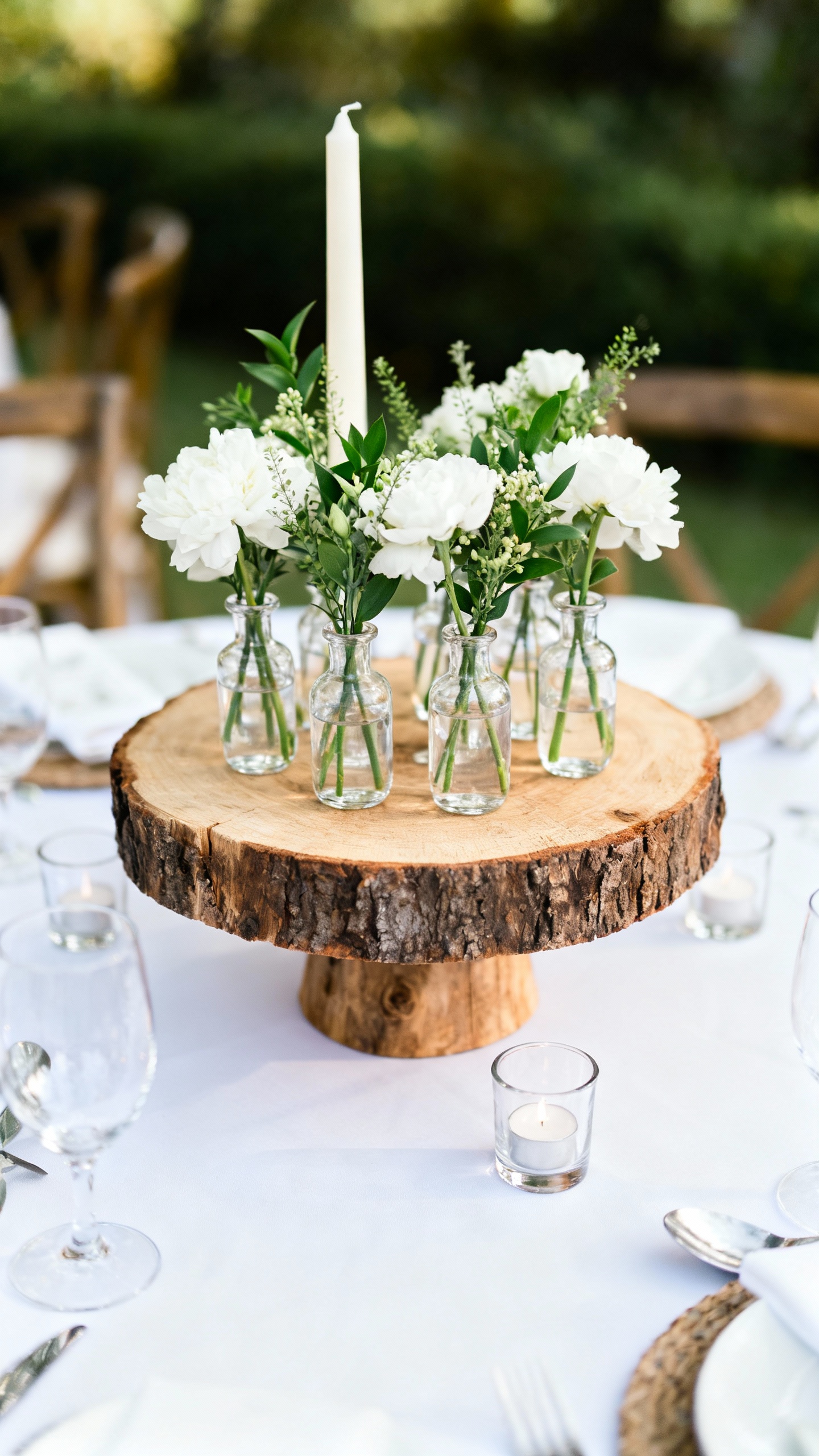 4) Elevated Wood Riser with Bud Vases + Candles