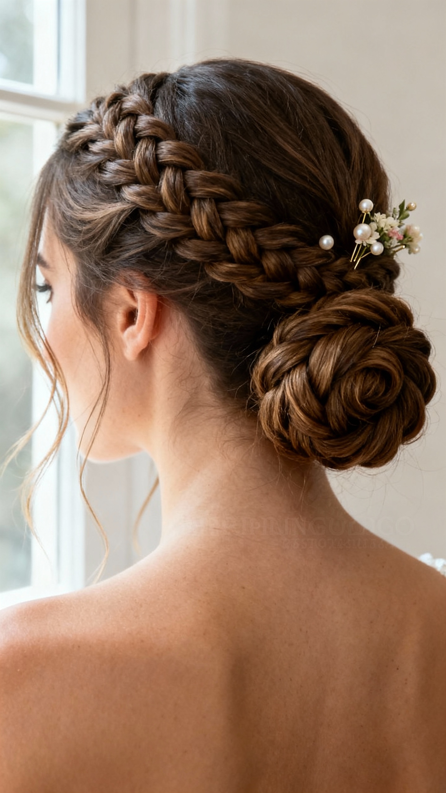 This style reads romantic and detailed, but it’s actually super DIY because braids do the heavy lifting—instant texture, instant dimension, instant “pro.” It flatters most face shapes and is especially great for thick hair or anyone who wants extra hold without a million pins. Practical tip: braid a low ponytail, pancake (gently pull) the braid for fullness, then coil it into a bun and pin along the outer edge; tuck your veil comb above the bun so the braid detail stays visible in photos.
