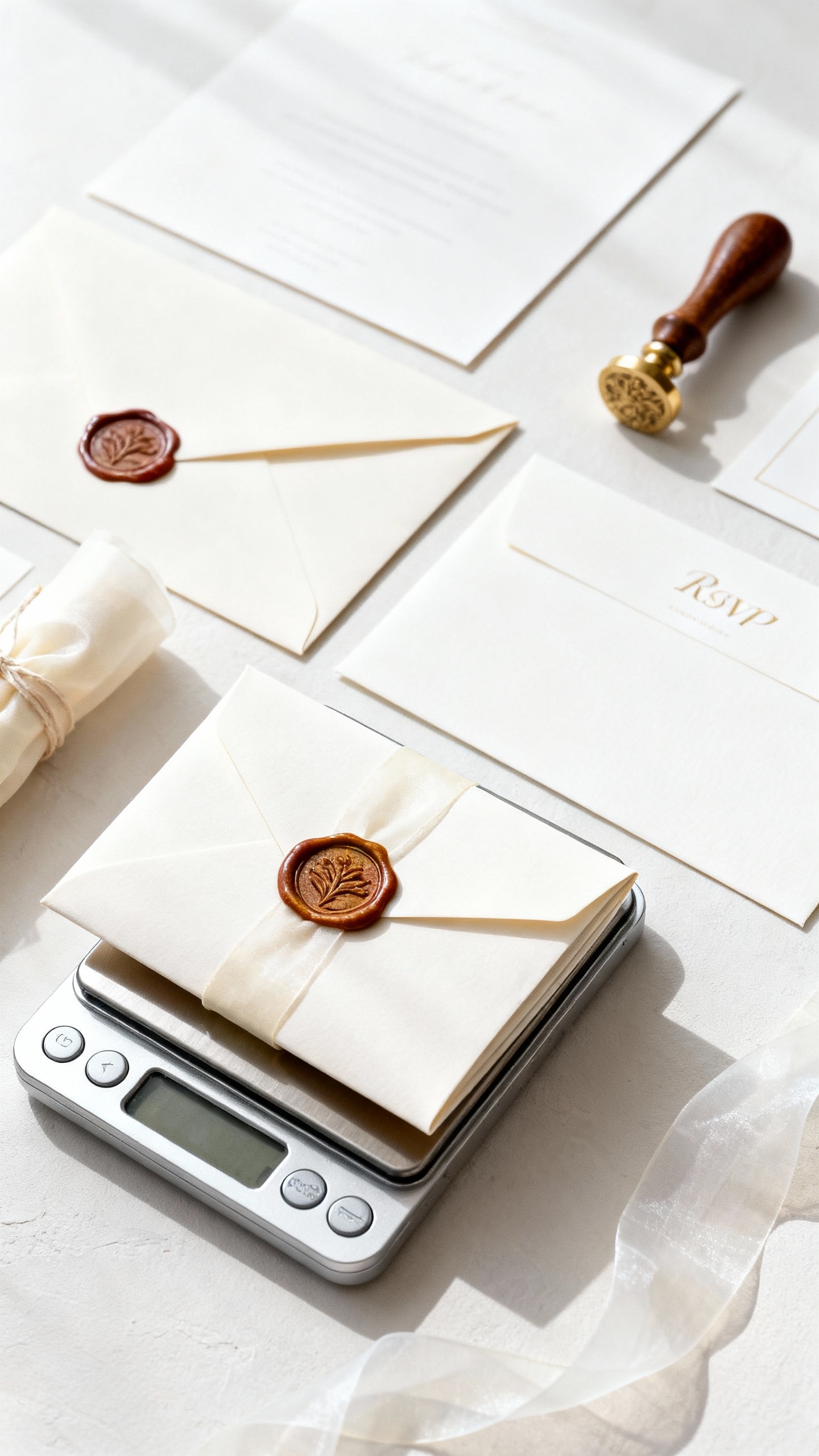 Wax seals, pocketfolds, layered invitation suites, thick cardstock, and non-rectangular envelopes can push you into higher postage tiers. Bring a fully assembled sample to the post office early so you know the exact rate before you order 100 of anything.