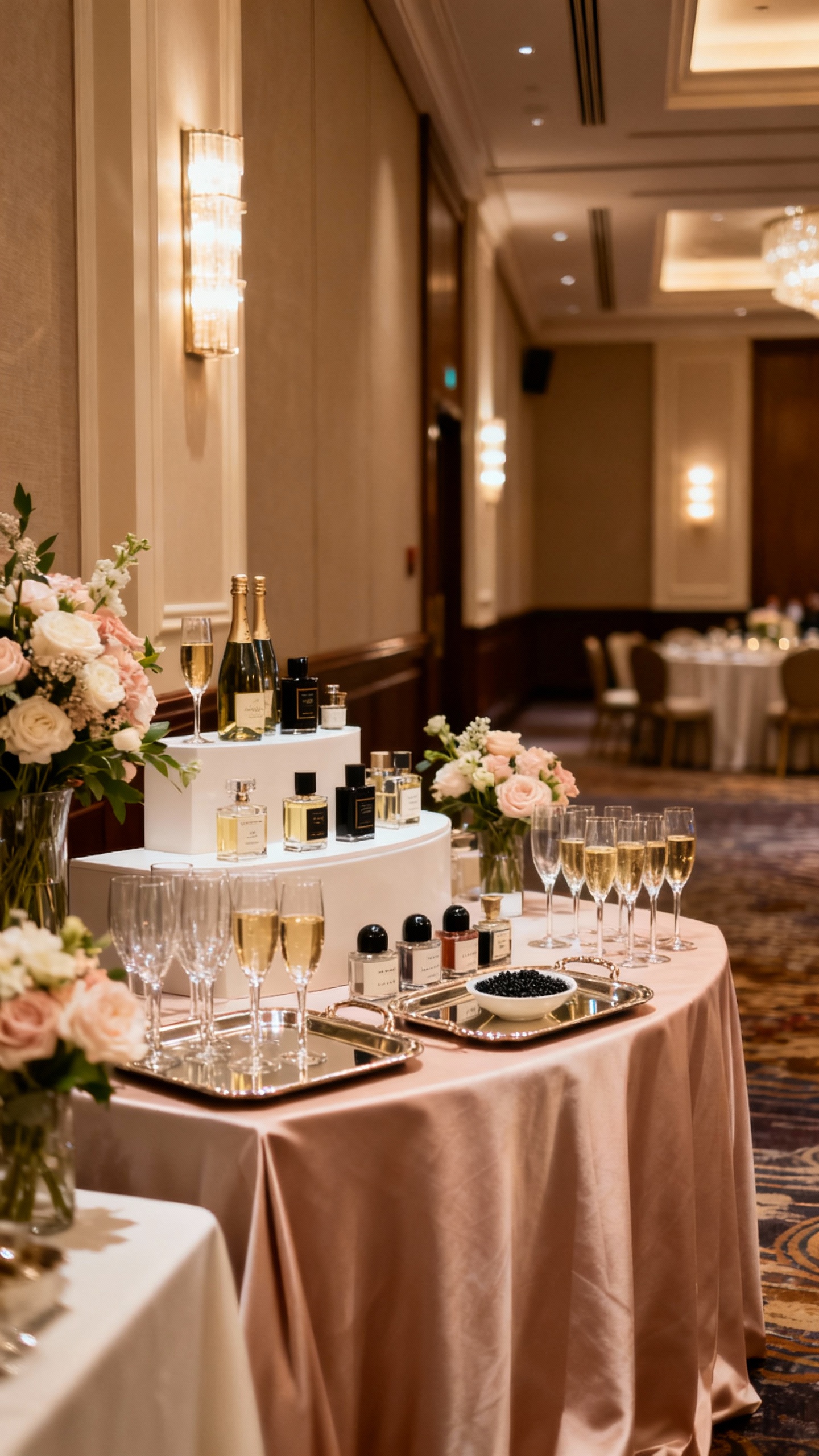 The new luxury flex is thoughtful guest experience, presented beautifully. Instead of a basic “grab and go” setup, create a styled station with signage, linens, florals, and intentional lighting—think champagne wall with coupe glasses, a caviar-and-blini moment, a curated fragrance bar, or a luxe dessert display that looks like a storefront window. Place stations where they naturally fit the flow: cocktails, late-night, or after-party entry. If it can double as decor and a photo moment, it’s doing the most in the best way.