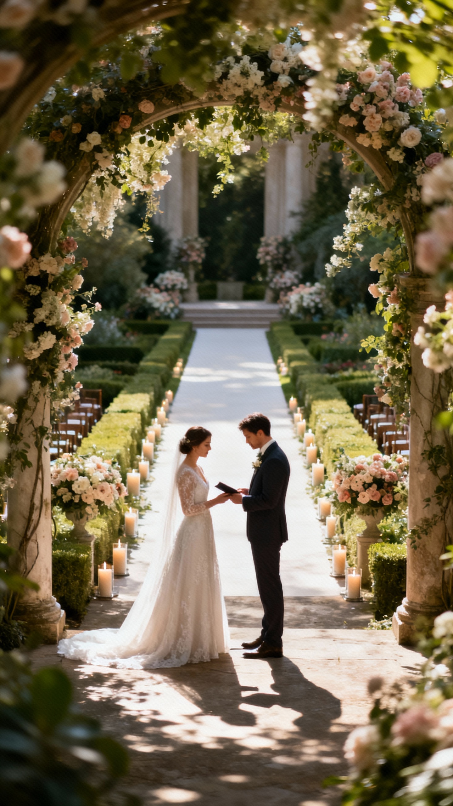 Luxury couples love the calm, intimate feel of private vows because it’s emotional without the audience pressure, and it keeps the ceremony streamlined. Then, make the public ceremony feel cinematic: aisle lighting, music that builds, and a ceremony backdrop that frames you perfectly (even from the last row). If your space allows, consider a “ceremony reset” where the floral installation repurposes into the reception—like moving the arch behind the sweetheart table. It’s a smart budget strategy that still looks like a full production.