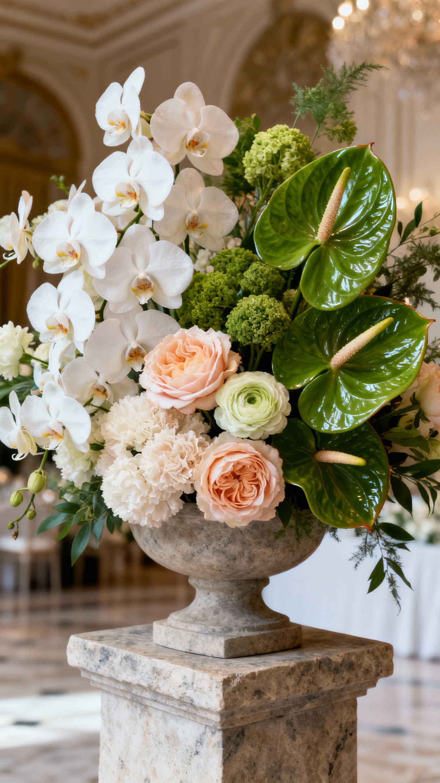 Big arrangements are beautiful, but texture is what makes them look expensive in photos. Think layered blooms with unexpected elements like anthurium, orchids, fluffy garden roses, interesting greenery, or even fruit and vine accents. A luxe move is focusing your floral budget on a few high-impact moments: ceremony installation, sweetheart table, and entry statement. Keep the tables refined with lower pieces and candles so guests can actually talk (and so the room still feels curated).