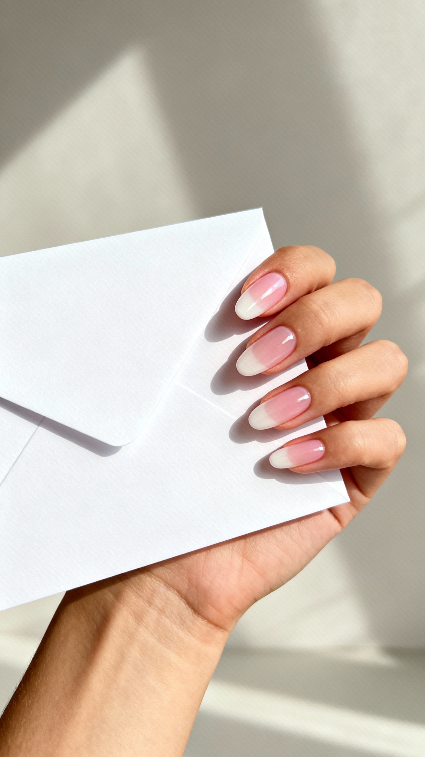 The French fade is the ultimate expensive-looking gradient: a soft pink base fading into a milky white tip, with no harsh line. It’s romantic, smoothing, and makes fingers look longer in photos—especially on medium almond or oval. Keep the fade subtle and airy (not stark white) for that luxury bridal finish. Wear tip: builder gel or a structured gel overlay helps the ombre stay flawless and crack-free, especially if you’re extending length or have naturally bendy nails.