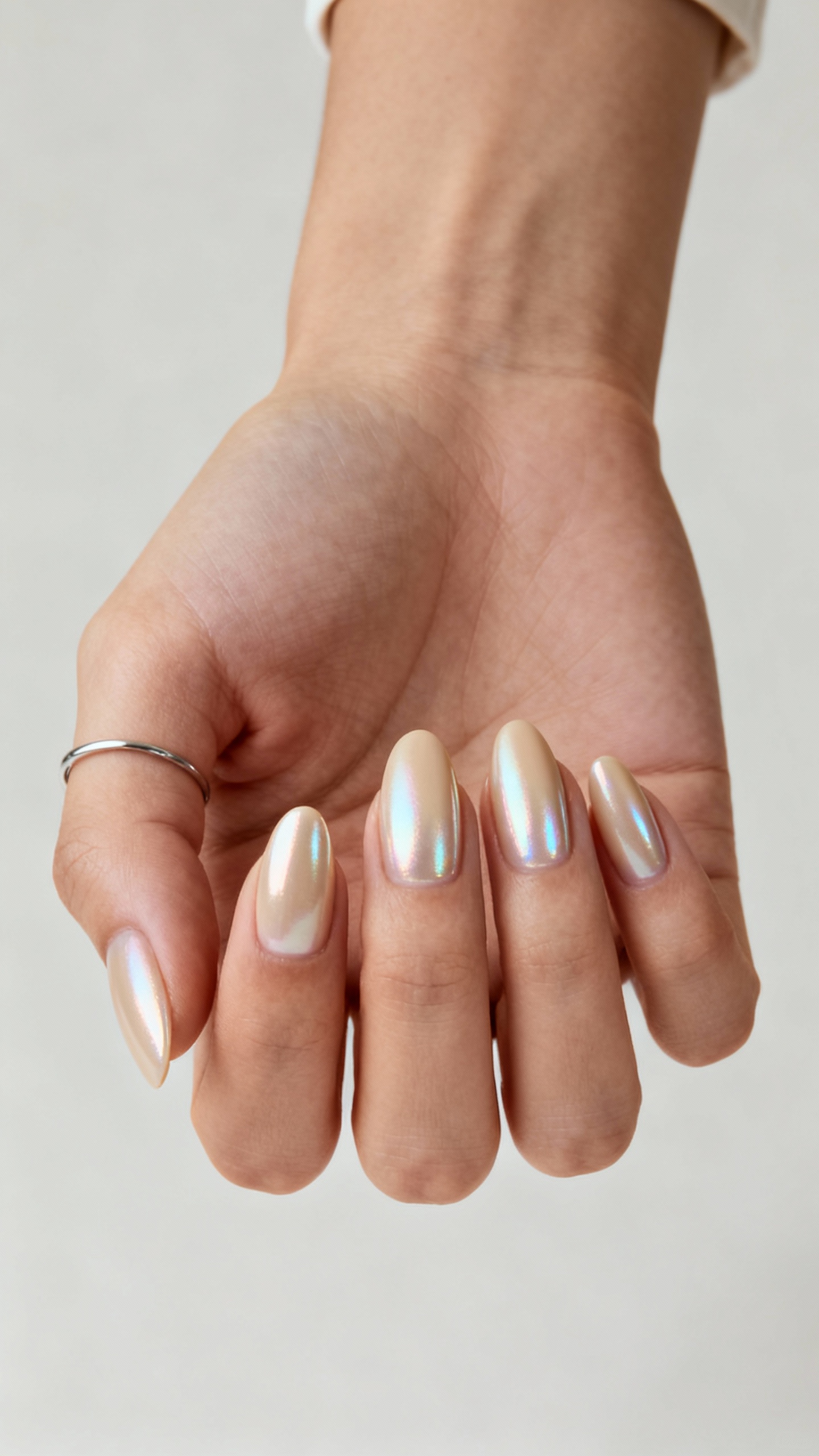Pearl chrome is like a veil for your nails: soft, light-reflective, and bridal without being glittery. Ask for a nude base close to your skin tone, then a “satin” or “pearl” chrome top so it shifts gently in photos rather than blindingly. Medium almond nails show off the glow best, but it’s stunning on short nails too if you keep the base neutral. Wear tip: request a sealed chrome application (no rough edges) and avoid harsh hand sanitizer right after—chrome lasts longest when the top coat is fully cured and protected.