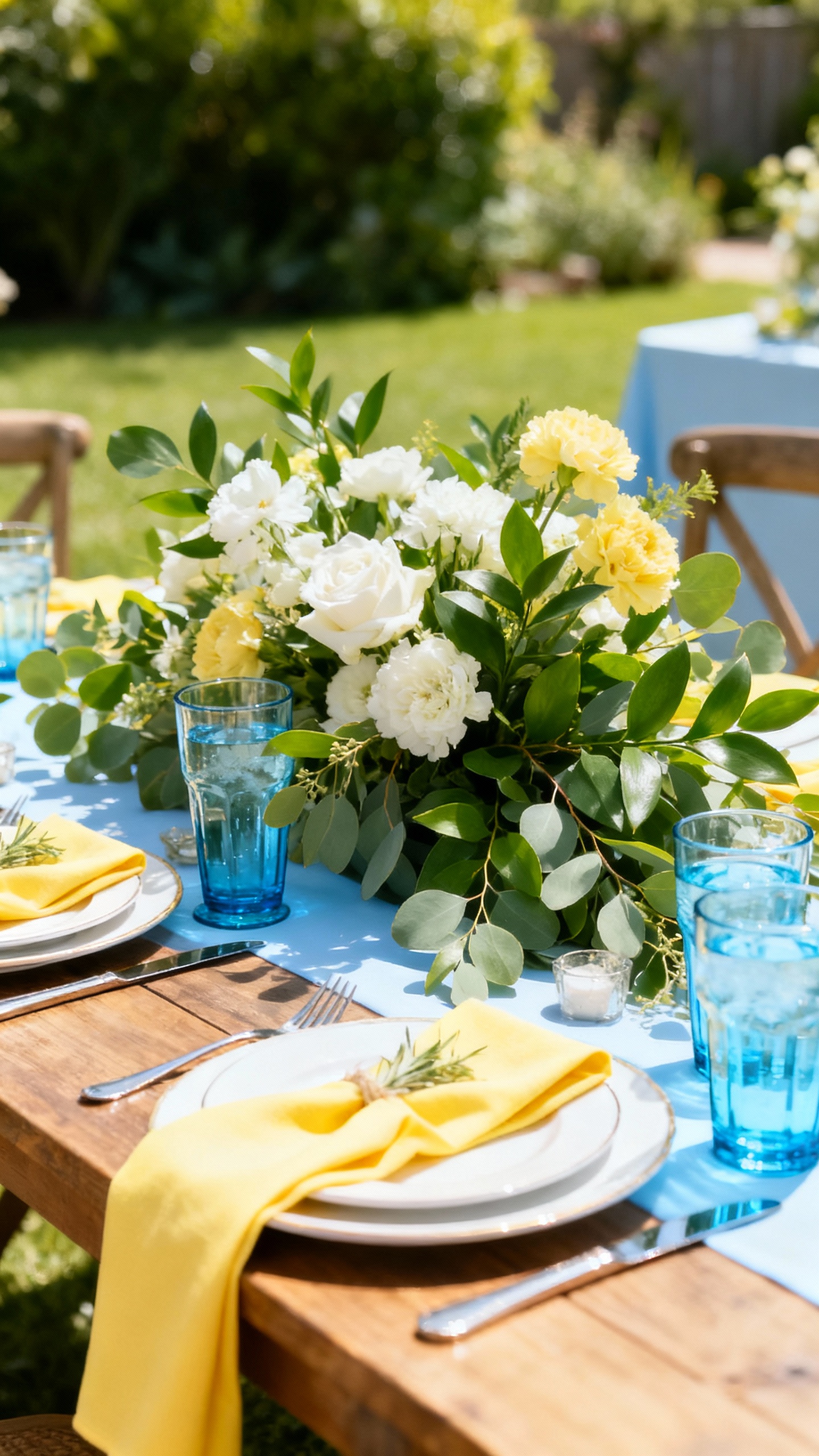 Choose at least one light tone (ivory, champagne, taupe) so your details don’t photograph too dark, especially indoors. Add contrast with a deeper shade (navy or plum) through small elements like ribbons, menus, or candles. Also, consider lighting: warm string lights love terracotta and champagne, while cooler daylight makes sage and sky blue look extra fresh.