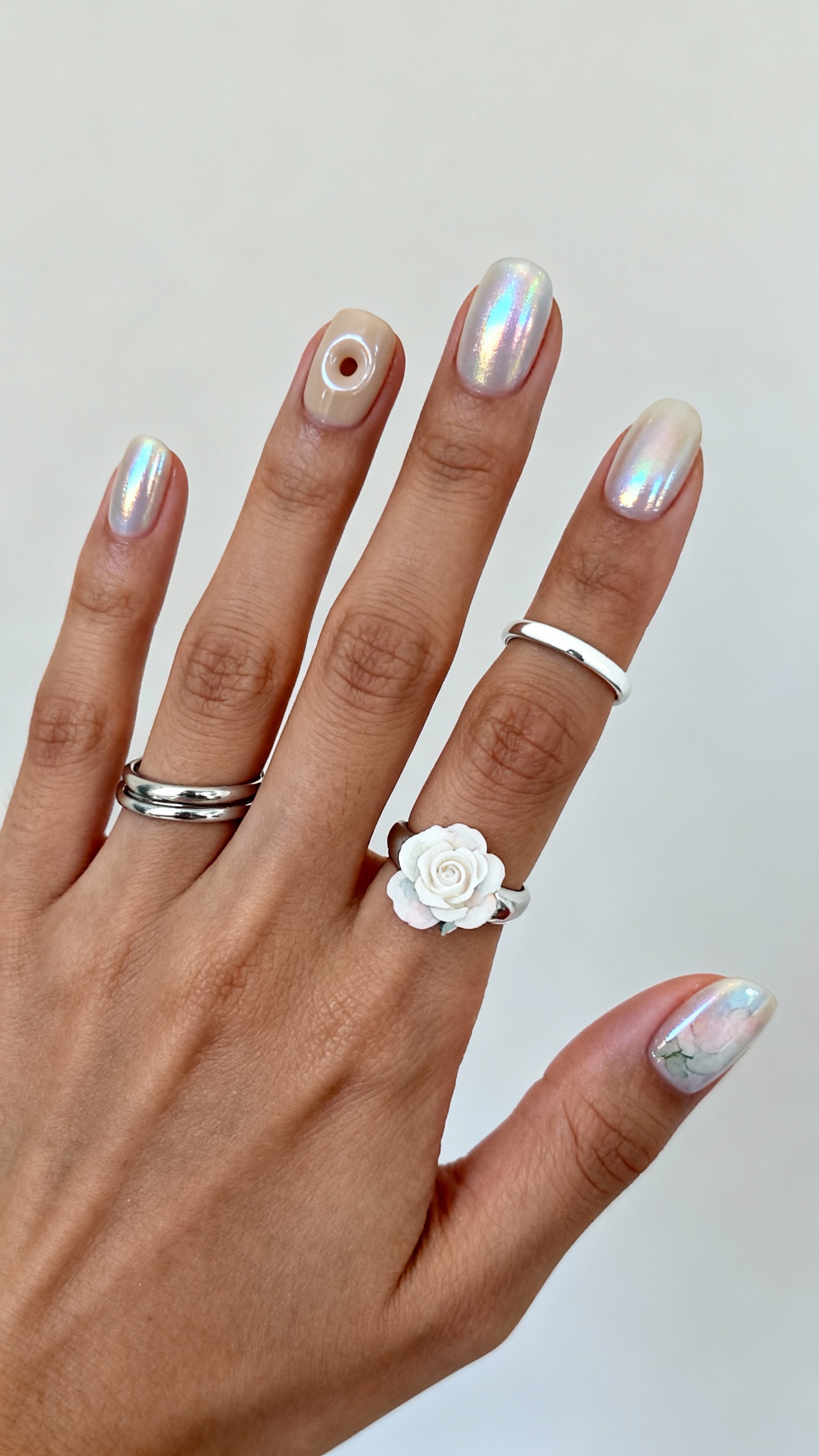 White rose wedding nails are that perfect “soft but intentional” detail—romantic, clean, and instantly bridal without feeling basic. The real magic is how the same white florals can read totally different depending on your jewelry: gold warms everything up, while silver makes it feel cooler and extra crisp.