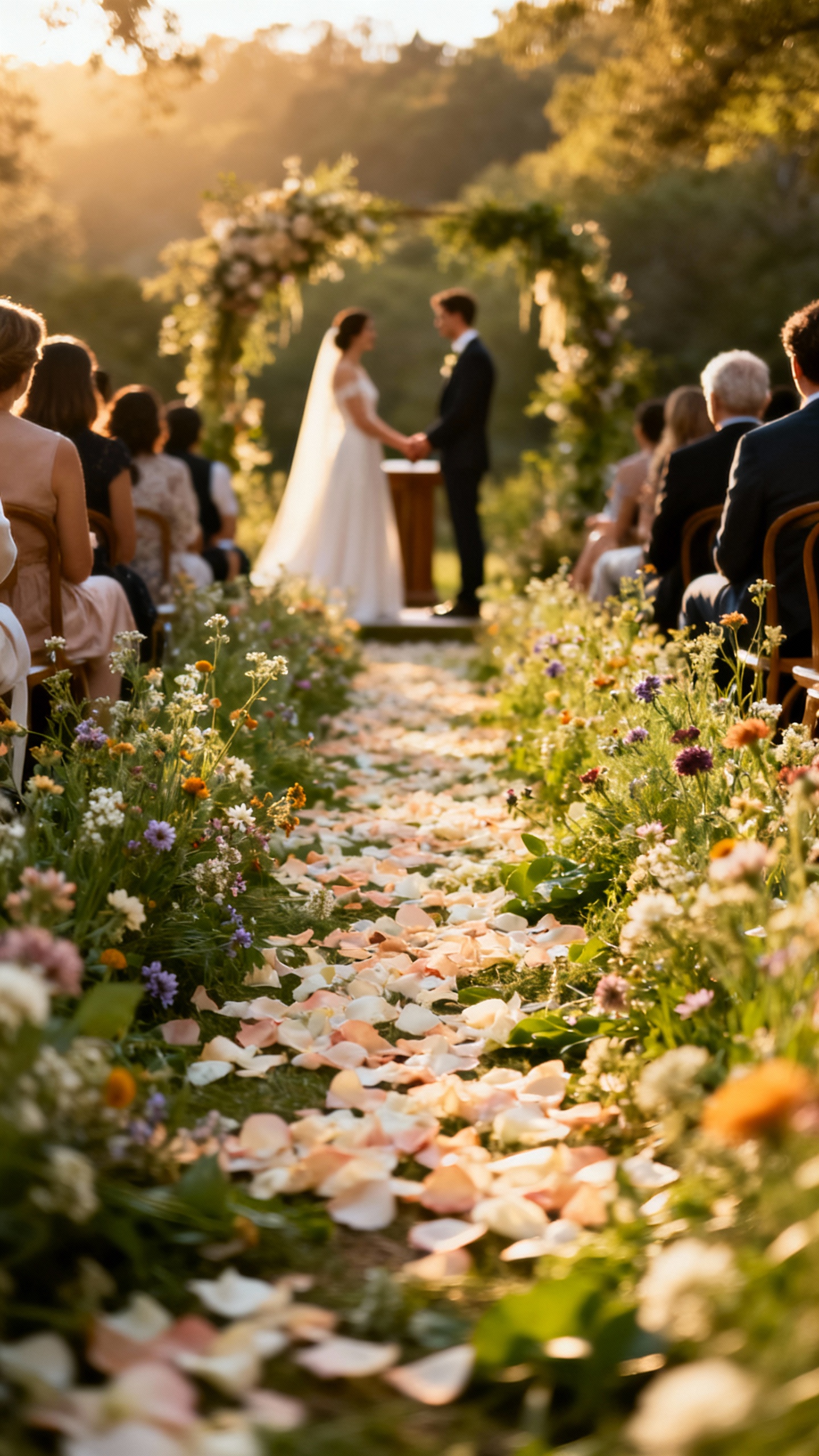 Swap the standard aisle for a “flower path”