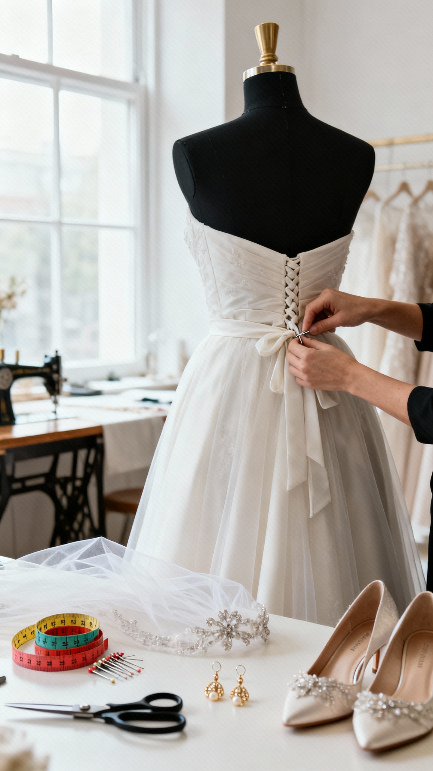 Alterations are the budget line item that sneaks up quietly: hemming, bustle, strap adjustments, tailoring, pressing, and sometimes extra fittings if your timeline changes. Then come the accessories—shoes, jewelry, veil, hairpiece, shapewear, and backup flats for dancing. Don’t forget your partner’s tailoring, shoes, and finishing touches too, plus bridesmaid alterations if you’re covering any part of their look. If you want a polished, editorial feel in photos, tailoring is one of the best “hidden” investments you can make.