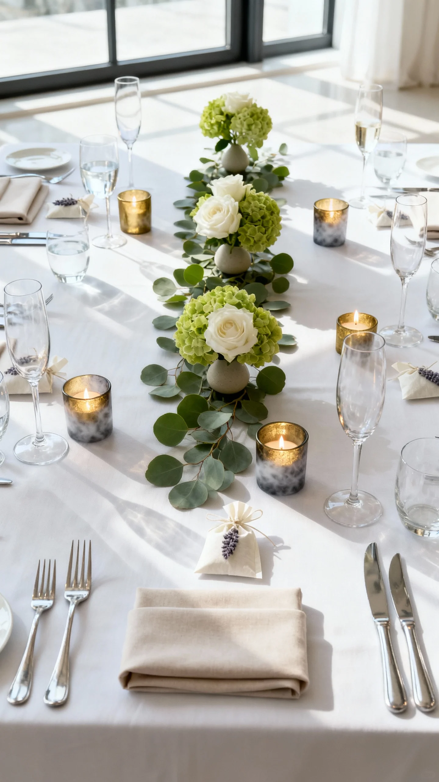 For minimalist tables, start with a refined base: crisp linens, neutral napkins, and streamlined flatware. Instead of big centerpieces, use a low runner of greenery or a few ikebana-inspired arrangements with negative space. Let glassware and candles do the heavy lifting—clear, smoke, or champagne-tinted glass looks polished without fuss. Keep favors practical and small so the table stays uncluttered.