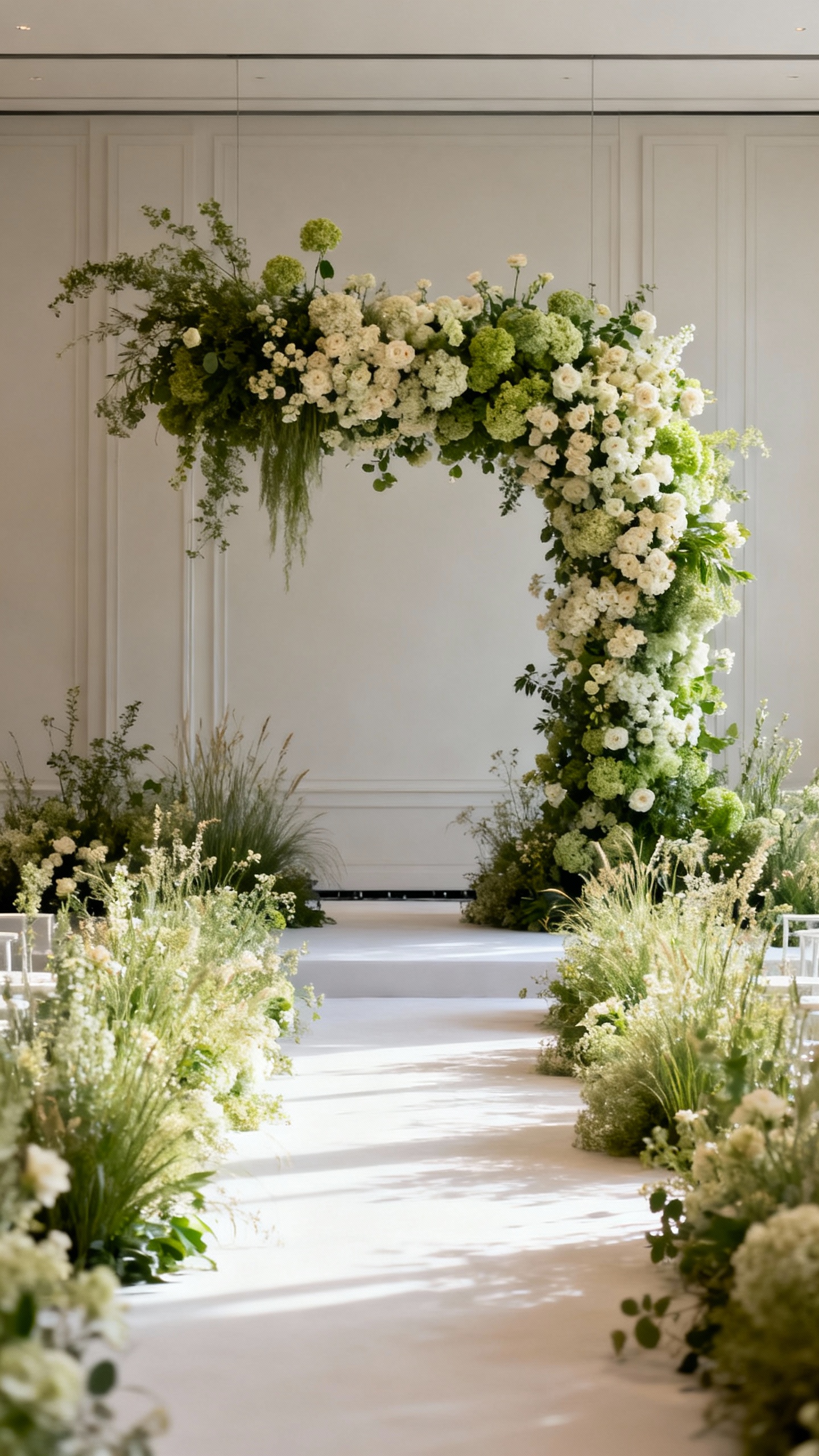 Go for one statement floral moment instead of scattering small arrangements everywhere. Think aisle meadows, a floral arch with asymmetry, or an overhead installation above the sweetheart table. Keep the palette tight (2–3 colors plus greens) so it reads expensive in photos. Bonus: repurpose ceremony pieces behind the head table to stretch your budget.
