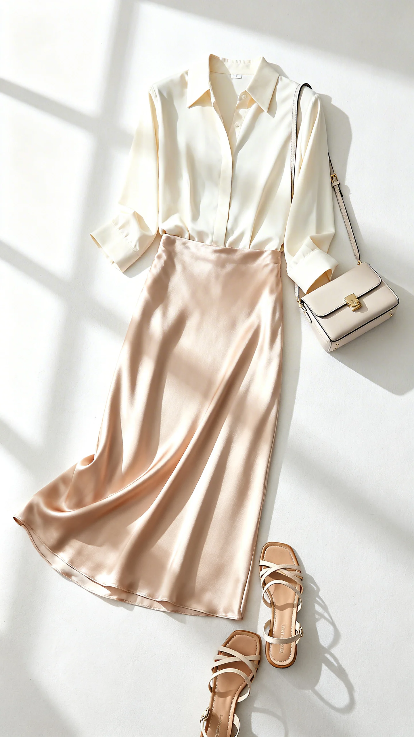 A silky slip skirt with a tucked-in blouse